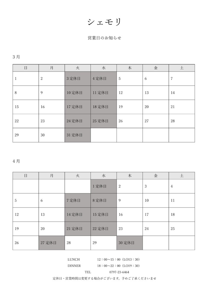 【営業日のお知らせ】(03-04月)